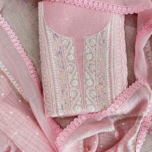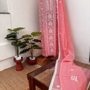 Chikankari Mul Chanderi Straight Suit – Baby Pink