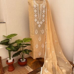 Chikankari Mul Chanderi Straight Suit – Beige