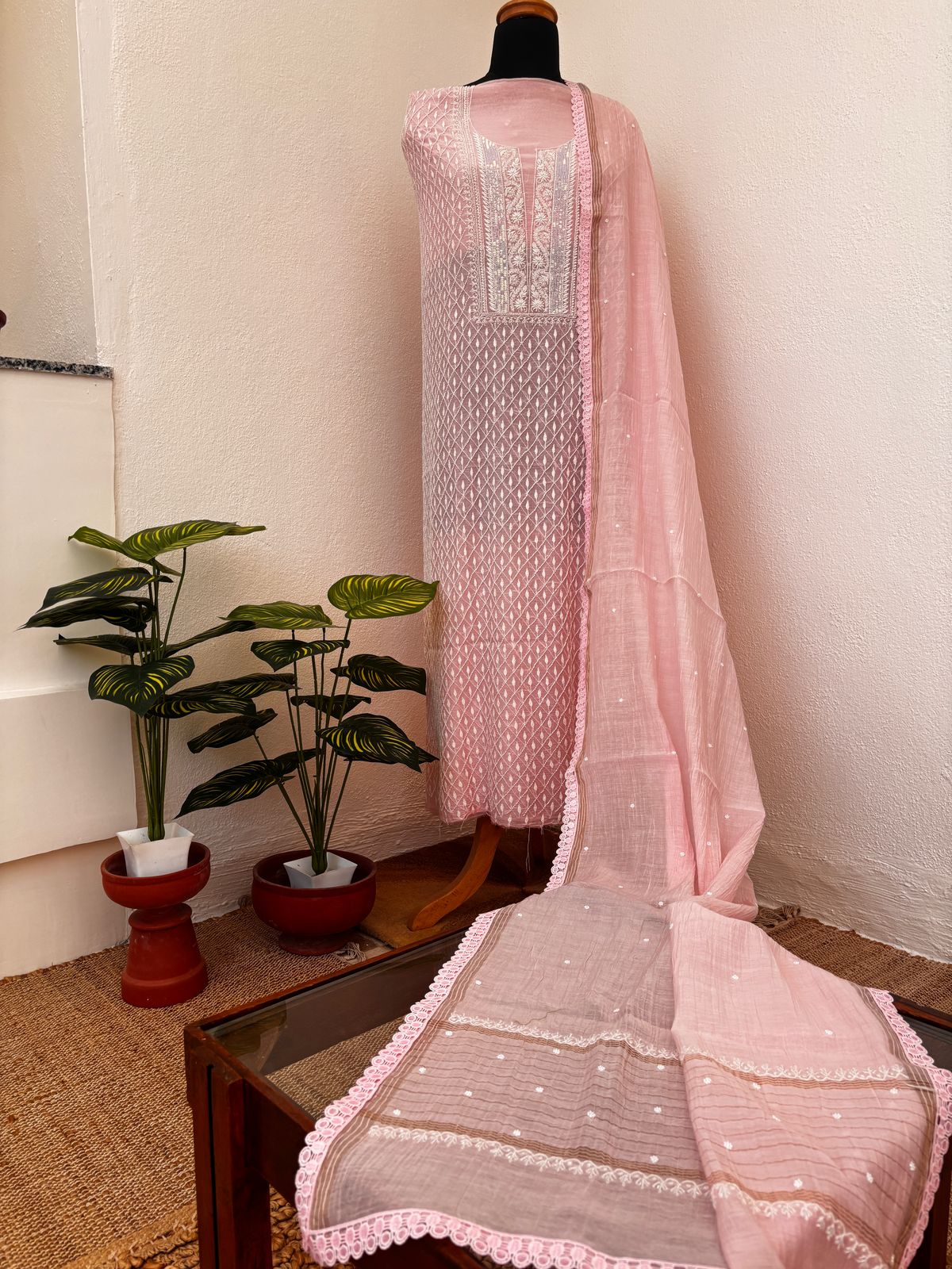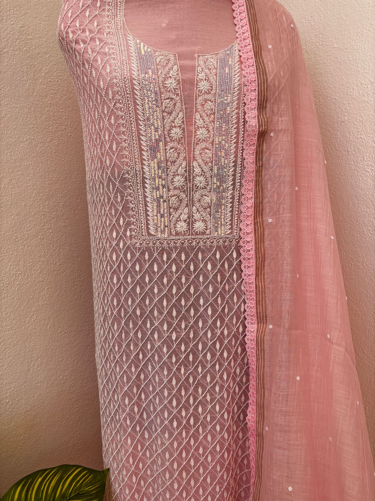 Please note: Due to the intricate nature of Chikankari embroidery and the variability of screen displays, the actual color of the suit may differ slightly from the image shown on our website. We strive to provide the most accurate representation of our products, but minor color variations are possible.
